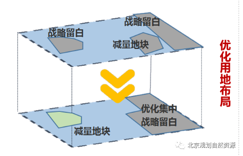 战略留白为优化功能留空间:将“疏解整治促提升”专项行动腾退等用地中短期内无明确实施计划的地块,及时划入战略留白用地,用于修补和动态完善城市功能。